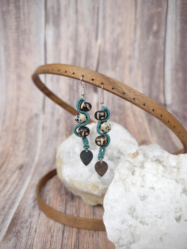 Ces boucles d’oreilles sont ornées de deux graines gravées venues d’Afrique du Sud, porteuses de symboles ancestraux et du lien profond entre la Terre et les traditions. Chaque graine, sculptée par la main humaine puis polie par le temps, apporte au bijou une dimension authentique, vivante et profondément enracinée.